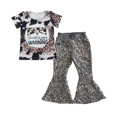 Baby Girl Cow Skull Shirt Grey Sequin Pants clothes sets
