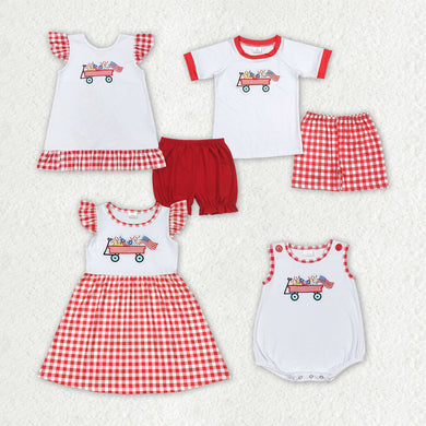 Baby Girls 4th Of July Flag Tractor Sibling Rompers Clothes Sets