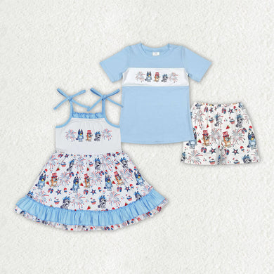 Baby Girls 4th Of July Dog Sibling Dresses Sets