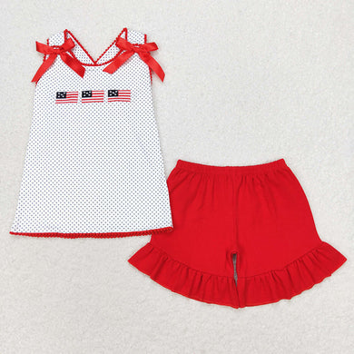 Baby Girls 4th Of July Flags Top Ruffle Shorts Clothes Sets