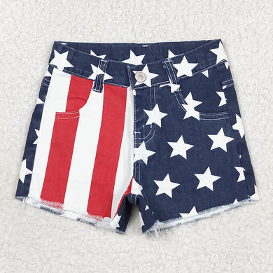 Baby Girls 4th Of July Stripes Stars Denim Shorts