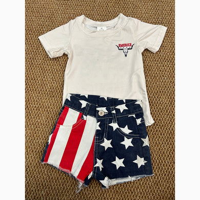 Baby Girls 4th Of July Shirt Top Stars Denim Shorts Clothes Sets