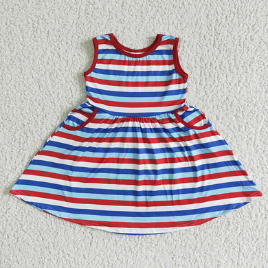 Baby Girls 4th of July Star Stripe Knee Length Dresses