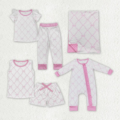 Baby Girls Bamboo Pink Bows Sibling Rompers Bamboo Pajamas Clothes Sets