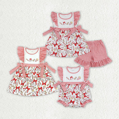Baby Girls Baseball Bows Sibling Sister Rompers Clothes Sets