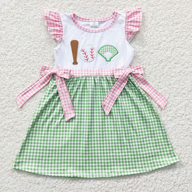 Baby Girls Baseball Flutter Sleeve Bow Knee Length Dresses