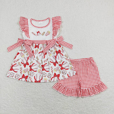 Baby Girls Baseball Bow Flutter Sleeve Top Ruffle Shorts Clothes Sets