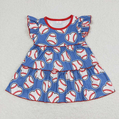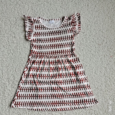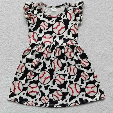 Baby Girls Baseball Flutter Sleeve Ruffle Knee Length Dresses