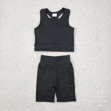 Baby Girls Black Athletic Active Wear Top Shorts Clothes Sets