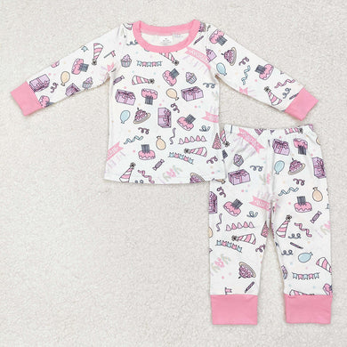 Baby Girls Birthday Pink Shirt Pants Pajamas Clothes Sets