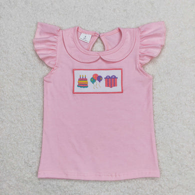 Baby Girls Birthday Pink Flutter Sleeve Tee Shirts Tops