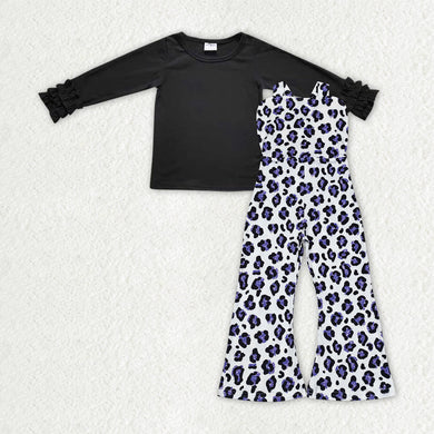 Baby Girls Black Top Leopard Jumpsuits 2pcs Clothes Sets
