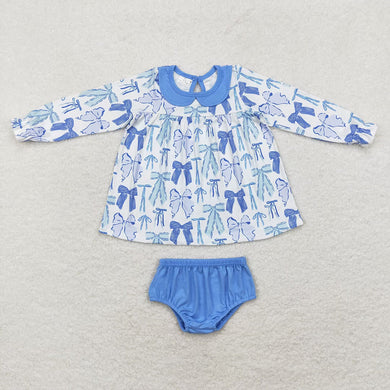 Baby Girls Blue Bows Ruffle Top Bummies Clothes Sets