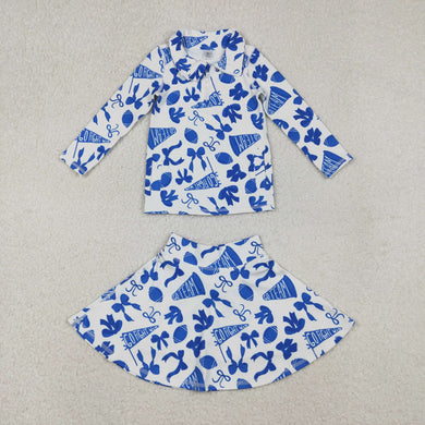 Baby Girls Blue Bows Go Team Zipper Pullovers Skirts Shorts Yoga Active Clothes Set
