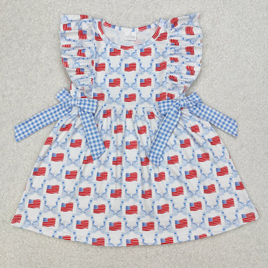 Baby Girls Blue Bows Flag Knee Length Dresses