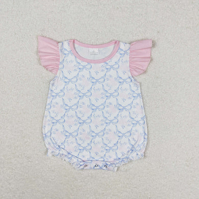 Baby Girls Blue Bows Flutter Sleeve Summer Rompers