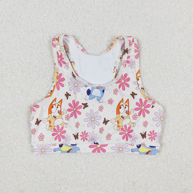 Baby Girls Blue Dog Flowers Sleeveless Vest Crop Tops
