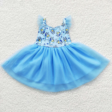 Baby Girls Blue Dog Tutu Knee Length Dresses