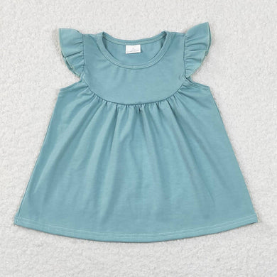 Baby Girls Blue Cotton Flutter Sleeve Tunic Tops