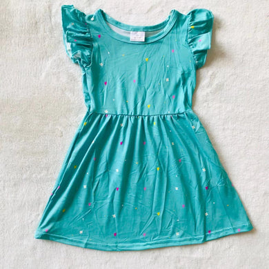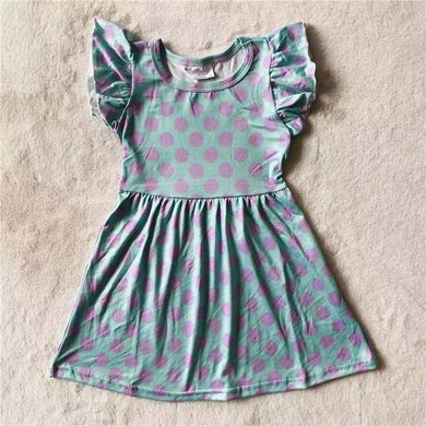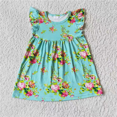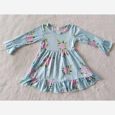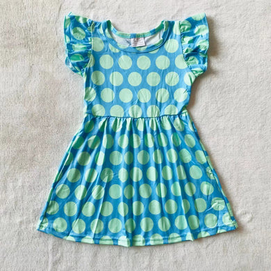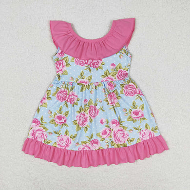 Baby Girls Blue Dots Pink Flowers Bow Knee Length Dresses