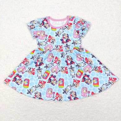 Baby Girls Blue Dogs Short Sleeve Knee Length Dresses