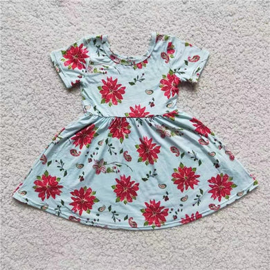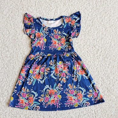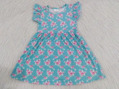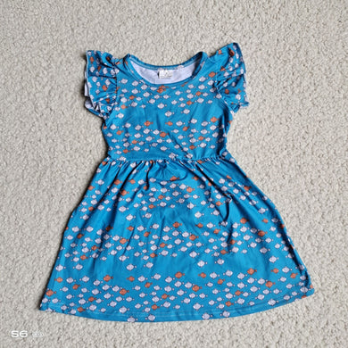 Baby Girls Blue Floral Thanksgiving Turkey Knee Length Dresses