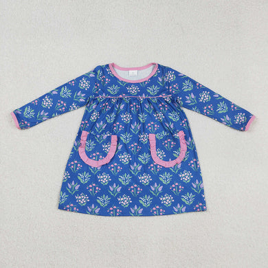 Baby Girls Blue Flowers Pockets Knee Length Dresses
