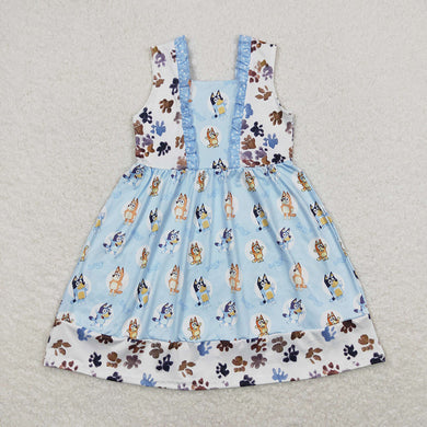 Baby Girls Blue Flowers Dogs Knee Length Dresses