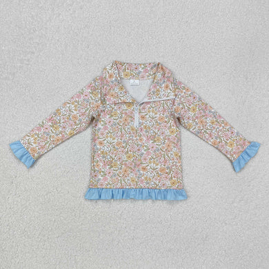 Baby Girls Blue Pink Flowers Zip Long Sleeve Pullovers Tops