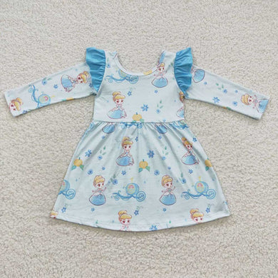 Baby Girls Blue Pink Flowers Long Sleeve Dresses 241126