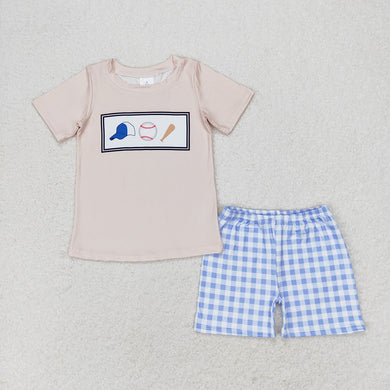 Baby Boys Baseball Tee Shirts Tops Blue Checkered Shorts Clothes Sets