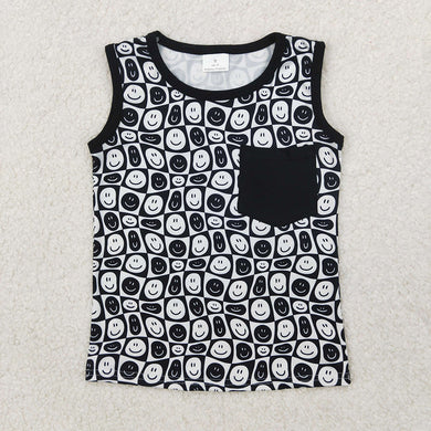 Baby Boys Black Smile Pocket Sleeveless Shirt Tops