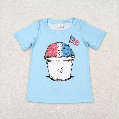 Baby Boys Blue 4th Of July Sand Flag Short Sleeve Tee Shirts Tops