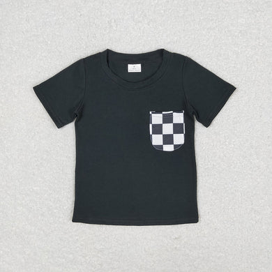 Baby Boys Black Checkered Pockets Short Sleeve Tee Shirts Tops