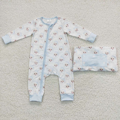 Baby Boys Blue Short Sleeves Duck Dog Rompers