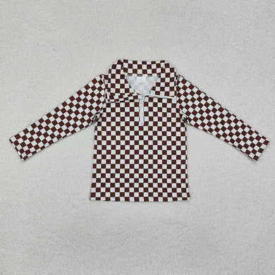 Baby Boys Brown Checkered Zip Pullovers Tops