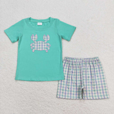 Baby Boys Crab Green Shirt Checkered Shorts Clothes Sets