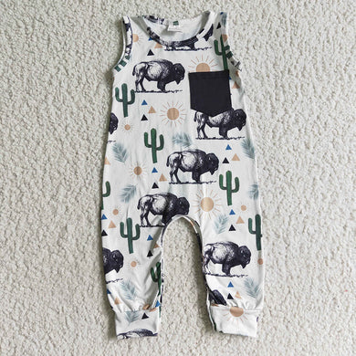 Baby Boys Cow Skull Western Short Sleeve Rompers