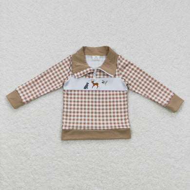 Baby Boys Dog Hunting Khaki Checkered Top Tee Shirts