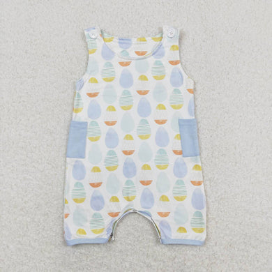 Baby Boys Easter Eggs Sleeveless Buttons Rompers