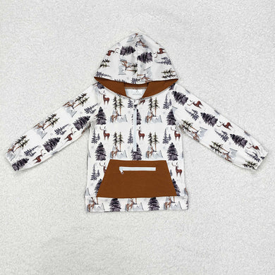 Baby Boys Fall Deer Trees Hooded Long Sleeve Tops