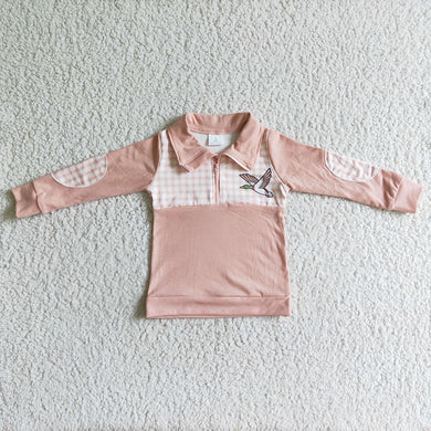 Baby Boys Fall Duck Blue Checkered Zip Pullover Tops