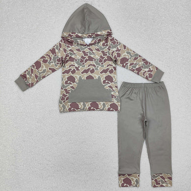 Baby Boys Green Camo Hooded Top Pants Clothes Sets
