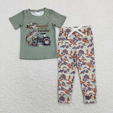 Baby Boys Green Farm Green Shirt Camo Pockets Pants Clothes Sets