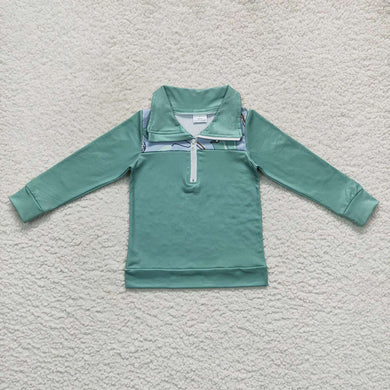 Baby Boys Green Fishing Patchwork Long Sleeve Zip Pullover Tops