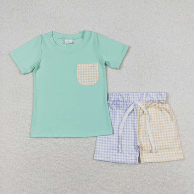 Baby Boys Green Pocket Tee Shirt Checkered Shorts Clothes Sets