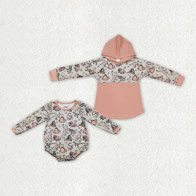 Baby Boys Hooded Long Sleeve Dinosaurs Sibling Rompers Tee Tops