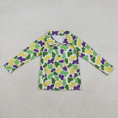 Baby Boys Mardi Gras Purple Green Yellow Camo Button Polo Shirts Tops