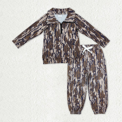 Baby Boys Olive Camo Long Sleeves Pocket Zipper Pullover Top Jogger Pants Clothes Set