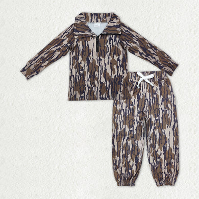 Baby Boys Olive Camo Long Sleeves Zipper Pullover Pocket Jogger Pants Clothes Set